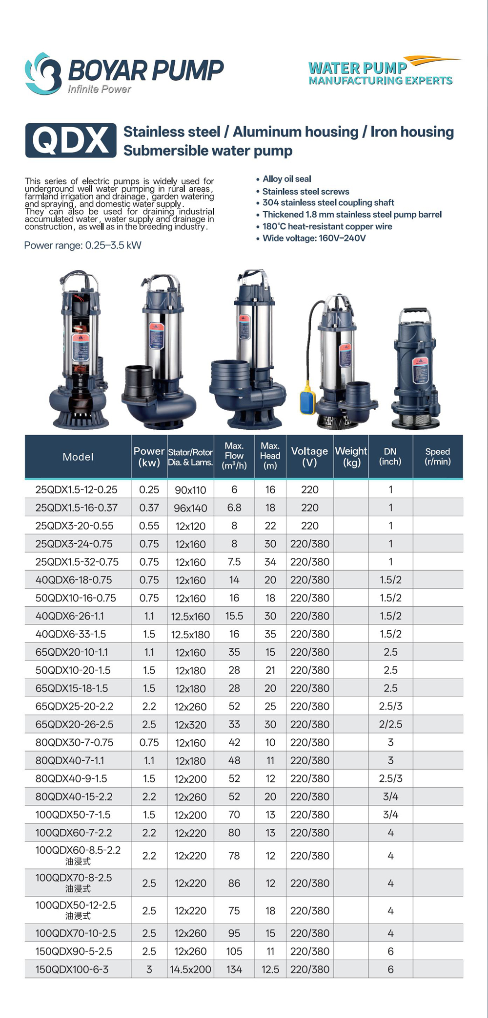 Name: QDX Series Stainless steel/Aluminum/Iron Shell series pump