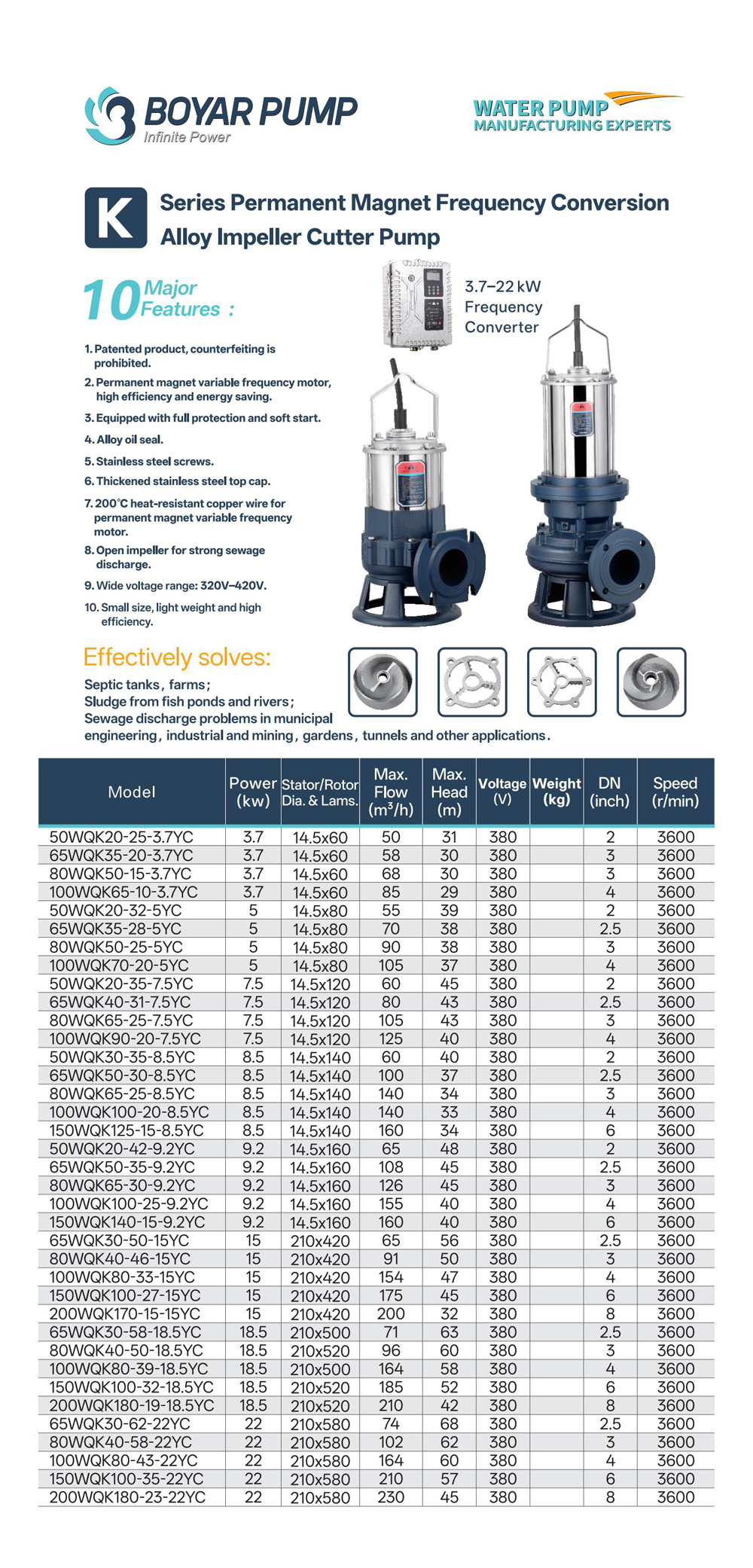 Name: K series permanent magnet variable frequency alloy impeller cutter pump